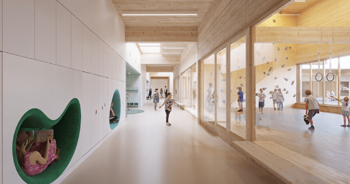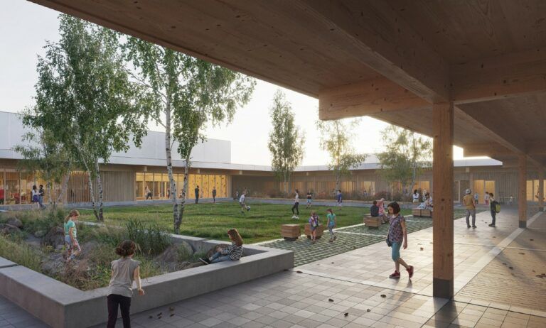 Inspireeriv puitarhitektuur, paindlik ruumikasutus, õpperuumidega seotud väliruum ja loogiline avalik ruumilahendus teevad koolist mõnusa õpikeskkonna.